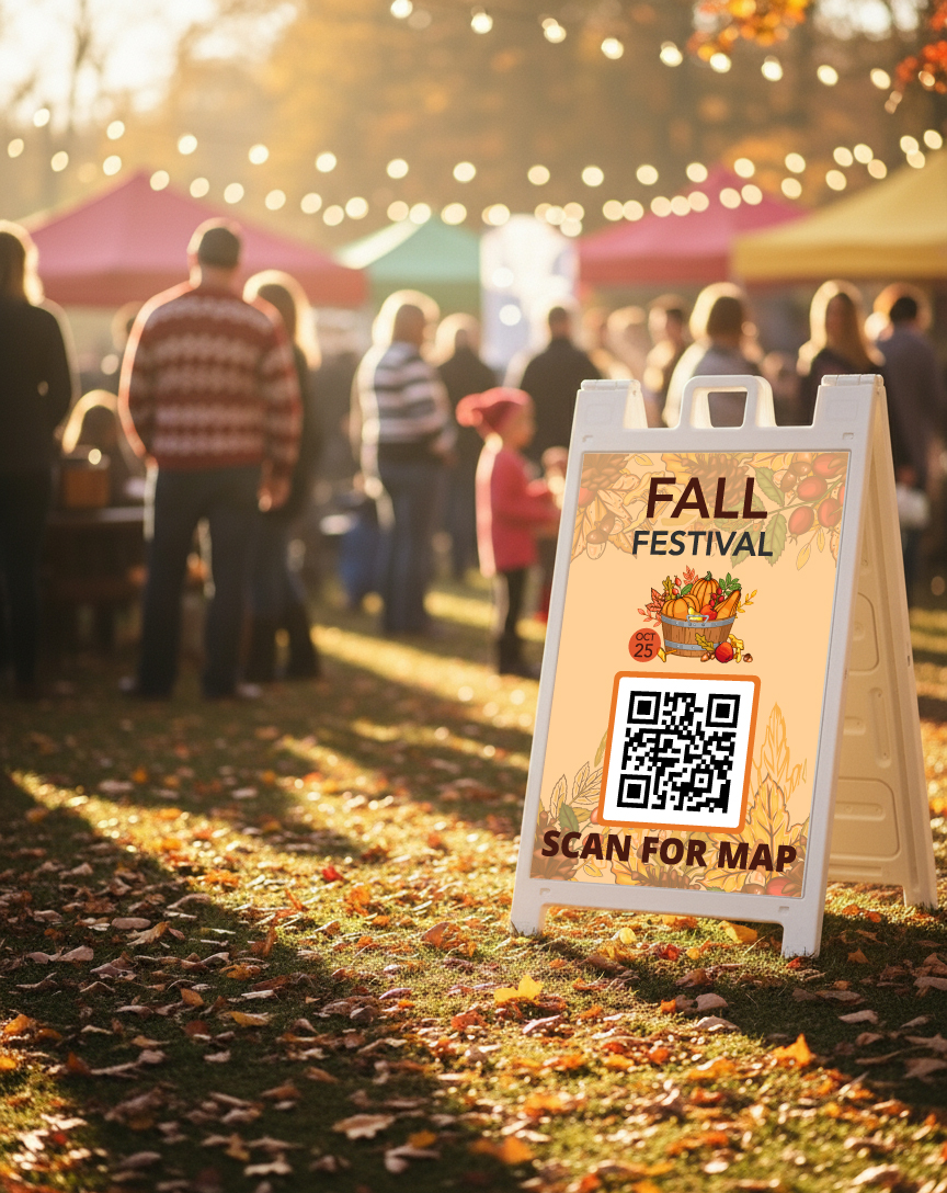 Place QR codes on banners, A-frames, and posters to link to schedules, maps, menus, donation portals, or FAQs. The beauty? You can update info in real time, so attendees always have the latest details.